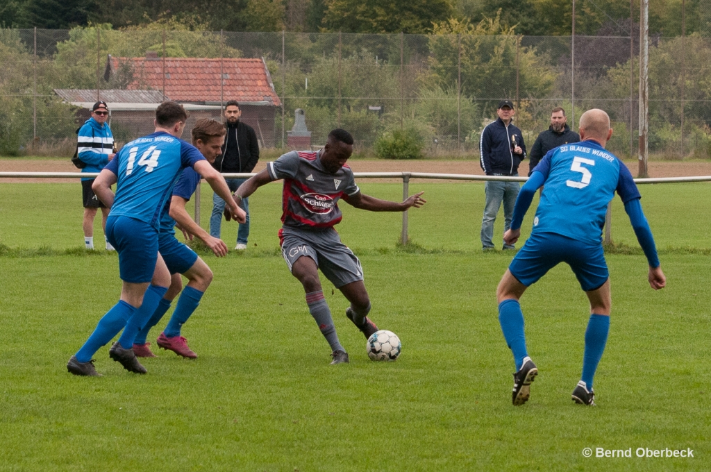 Die Halbzeitansprache von Trainer Mo Kordian schien gefruchtet zu haben. Nach dem Seitenwechsel agierten die Jungs vom Kronsberg deutlich zielstrebiger und konnten unmittelbar nach Wiederanpfiff den Ausgleich erzielen. Nach einer der wenigen gelungenen Flachpass-Kombinationen über mehrere Stationen behielt David Oduneye die Ruhe und schob am Keeper vorbei zu seinem ersten Pflichtspieltor für die Erste (KISTE!!) ins Gehäuse ein. Den Schwung vom Erfolgserlebnis konnte man mitnehmen und man erkämpfte sich immer wieder Torgelegenheiten: ein vermeintlicher Abseitstreffer wurde vom souveränen Schiedsrichtergespann zum Frust des Bemeroder Anhangs aberkannt; eine andere Gelegenheit konnte von der Defensive vom Wunder auf der Linie geklärt werden. So blieb es auch nach einigen Kontersituationen vom Blauen Wunder in der Schlussphase beim 1:1 Unentschieden.