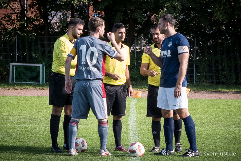 Das Spiel begann mit einem perfekten Start für unsere Erste: Nach einer Ecke konnte der Volleyschuss von Steffen Krumpholz noch von einem Verteidiger der Kroaten abgeblockt werden, doch Hasan Alabas schaltete am schnellsten und konnte den Ball abstauben und verwerten. So stand es nach zwei Minuten bereits 1:0 für die Hausherren. Nach diesem Traumstart wurde das Spiel aber nicht besser, sondern flachte ab. Die Bemeroder zeigten zu wenig von ihrem Kombinationsspiel, erarbeiteten sich kaum Torraumszenen und spielten meist lange Bälle, welche ohne große Mühen von den großen Abwehrspielern verteidigt werden konnten. Die beste Chance der ersten Hälfte hatte SV Croatia bei der der gegnerische Stürmer einen quergelegten Ball weit am Tor vorbei schoss. Kurz vor Abpfiff der ersten Hälfte kam nach einem „leichten Zupfer“ am Arm des Stürmers von Croatia der Elfmeterpfiff des Unparteiischen. Der Strafstoß wurde von D. Koteski zum 1:1 verwandelt. Ein sehr ärgerlicher Zeitpunkt für einen Gegentreffer, denn damit ging es dann in die Pause.