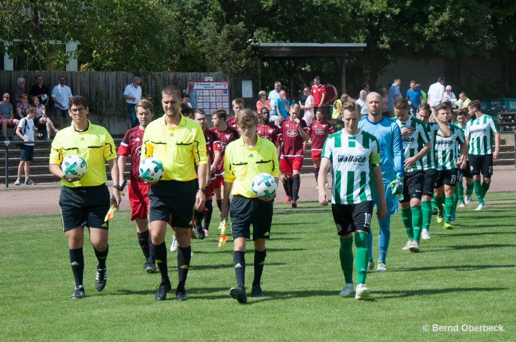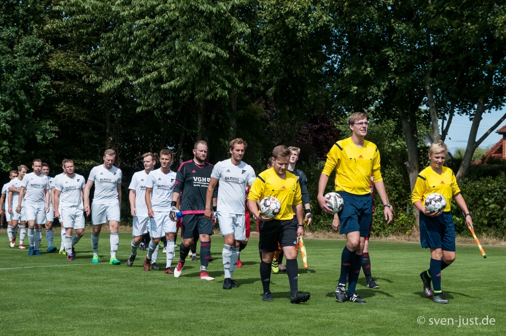 Zu Beginn des Spiels versuchte der Gast mit langen Bällen über die Abwehr des TSV zu kommen, dies funktionierte allerdings nur selten. Nach einem kurzen Abtasten kam der TSV durch gute Positionsverlagerungen und schnellem Kombinationsspiel vor das Tor der Gäste: In der 26. Minute konnte Paul Götting einen gut durchgespielten Pass im Tor zum 1:0 unterbringen. Anschließend kam der Gast aus Ramlingen ein bisschen besser ins Spiel und hatte einige Torchancen. Kurz vor der Halbzeit gelang den Gästen durch einen direkten Freistoßtreffer der Ausgleich (45. Minute).