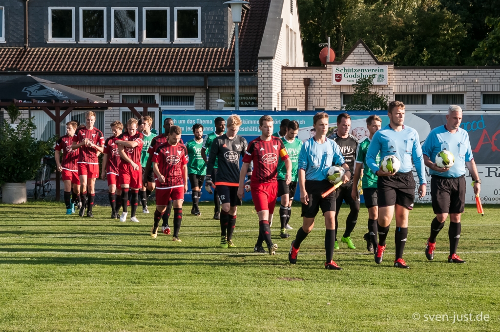 Nach dem letzten Spiel wollten unsere Jungs eine Reaktion zeigen. In den ersten Minuten passierte auf beiden Seiten nicht viel. Keine Chancen und auch kein überlegendes Spiel von einem der beiden Teams. In der 7. Minute jedoch brach ein Spieler von Godshorn auf der linken Seite durch und konnte nur durch ein Foul gestoppt werden. Der darauf folgende Freistoß führte zum Tor für die Heimmannschaft. Der Torschütze setze sich bei der Flanke am besten durch und köpfte aus drei Metern ein. Nur zwei Minuten später konnte ein lang geschlagener Ball nicht konsequent genug geklärt werden und gelangte auf Umwegen zum Godshorner Stürmer. Diesem gelang ein Schuss aus 20 Metern, der genau ins Eck passte: 2:0.
