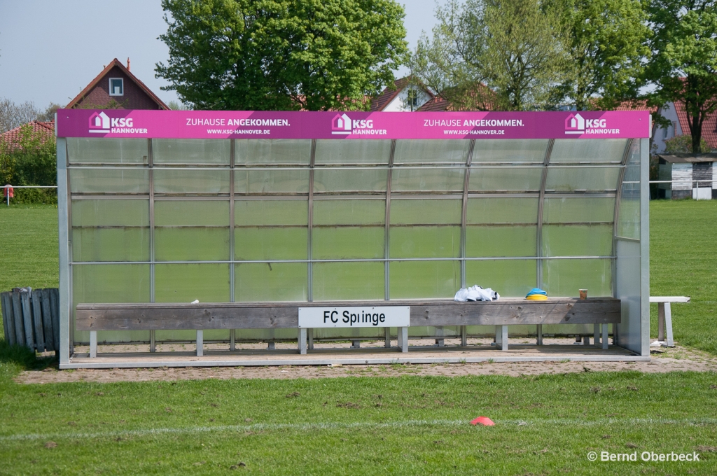 Gastfreundschaft wird in Springe groß geschrieben. So erwartete das Trainerteam und die Ersatzspieler eine nagelneue Auswechselbank. Dumm nur, dass diese im Gegensatz zur Heimbank noch in ihren Einzelteilen verpackt war.