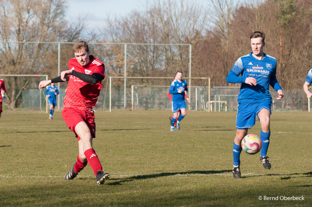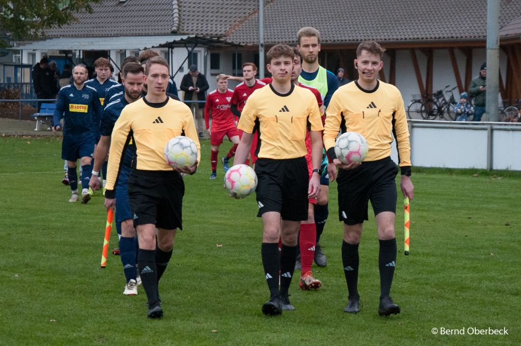 In der 2. Halbzeit ging es dann Schlag auf Schlag. Nach einem tiefen Pass der Heimmannschaft gelangte der Ball infolge eines Klärungsversuchs der Bemeroder Verteidigung über die Linie. Keine fünf Minuten später wurde dann David tief geschickt und von einem Verteidiger der Heimmannschaft als letzter Mann gefoult. Rote Karte und Überzahl hieß es ab jetzt. Das Spiel wurde im Anschluss hitziger. Die Heimmannschaft versuchte jeglichen Spielfluss zu unterbinden, der Schiedsrichter tat sein übrigens. Der TSV ließ sich davon allerdings nicht beirren und konnte in der 66. Minute den Ausgleich erzielen. Leo Bült wurde auf der linken Seite schön freigespielt und feuert den Ball in den Strafraum, sodass David den Ball mit einem sauberen Abschluss im Tor versenken konnte. Der TSV blieb weiter dran. Teils fehlte aber die letzte Konsequenz, teils auch das notwendige Quäntchen Glück. Nach einem hohen Ball in den 16er konnte sich Paul im Luftduell durchsetzen und den Ball zu Armin weiterleiten. Armin bekam noch die Fußspitze an den Ball, der allerdings nur am Pfosten landete und von dort in die Arme des Torhüters sprang.