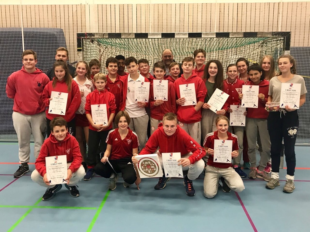 Da unsere C Knaben bei der Sportmotorik (Bälle verstecken, Medizinball stoßen und Schubkarrenrennen) die meisten Punkte holen konnten, durften sie sich am Ende punktgleich mit dem DTV über den ersten Platz freuen.